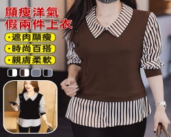 • 顯瘦假兩件襯衫NT$998NT$1298新款減齡顯瘦假兩件襯衫,上身遮肚顯瘦修飾身型,百搭不挑人,內搭外穿都好看!詳情