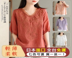 • 日系棉麻V領中袖NT$898NT$1298日系棉麻V領中袖 輕薄柔軟不悶熱 上身顯氣質 七色可選詳情