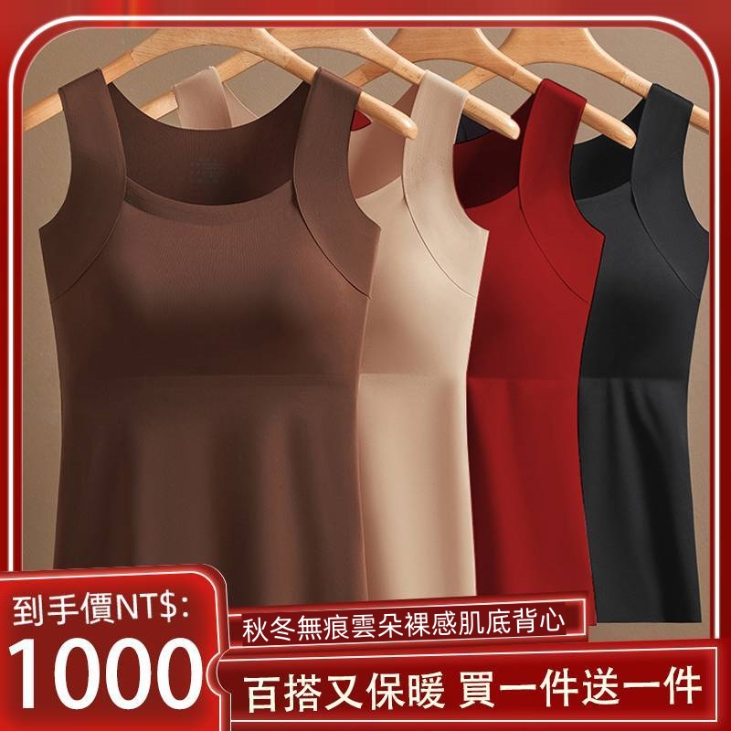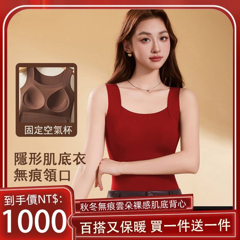 秋冬無痕雲朵裸感肌底衣保暖背心女固定杯美膚衣打底秋衣保暖背心