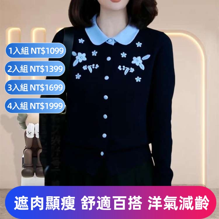 [4]「花朵刺繡假兩件針織開衫」4入組 NT$1999